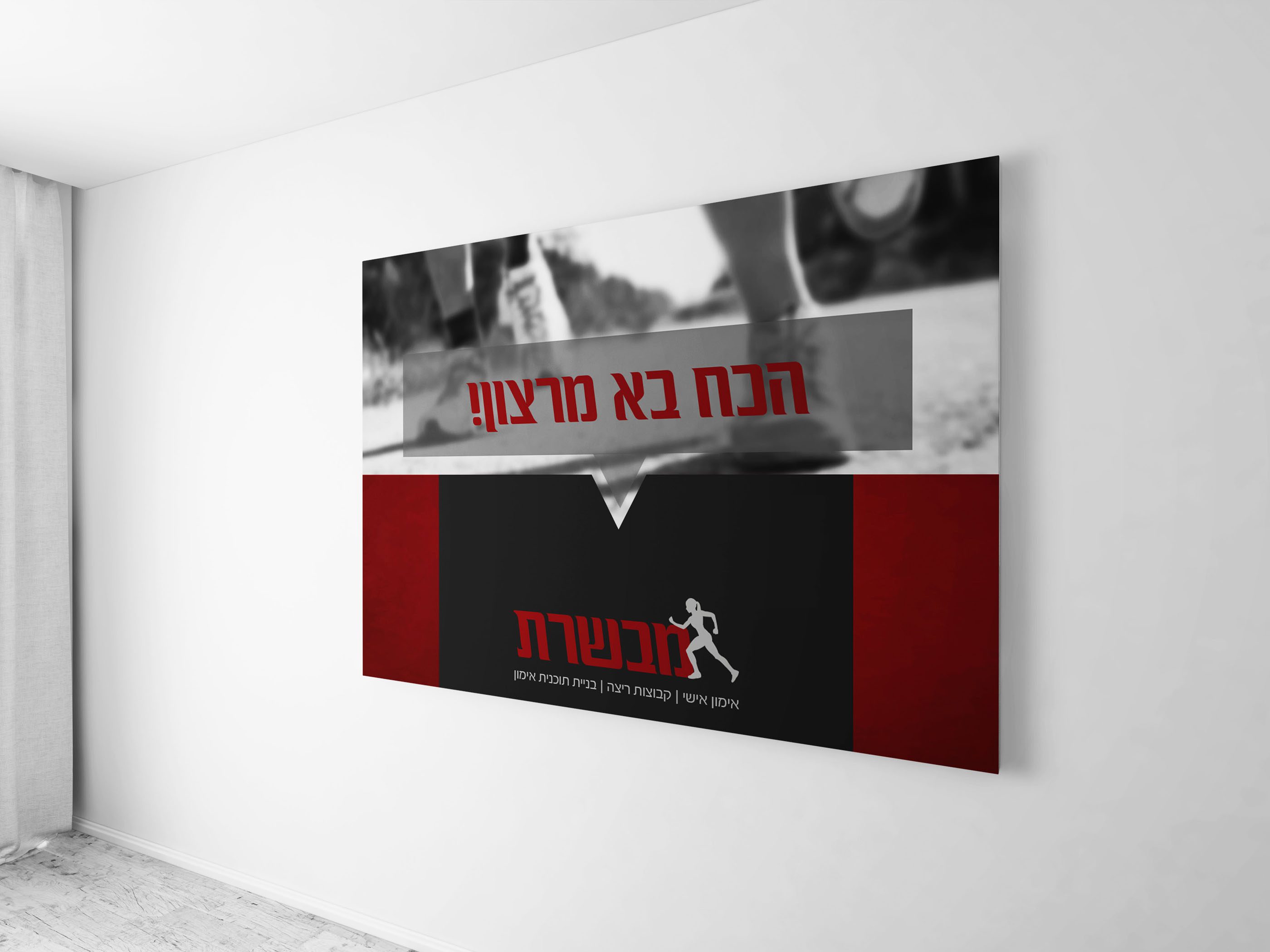במיתוג רצינו לשדר את העוצמה של האימון ושל מבשרת. הלכנו על צבעים חזקים ונועזים – אדום ושחור.